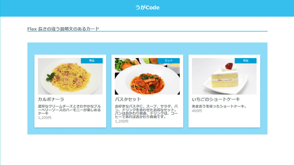 また、Flex + Card (画像と長さの違う文章 + 短い注釈) に苦しめられる…。