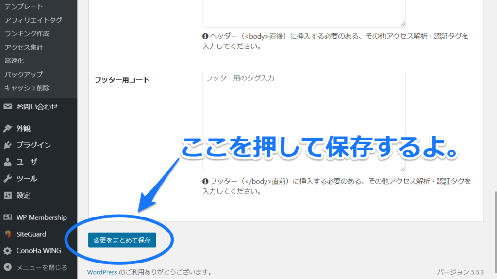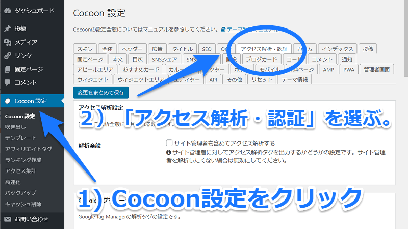 目指すは「その他のアクセス解析・認証コード設定」。