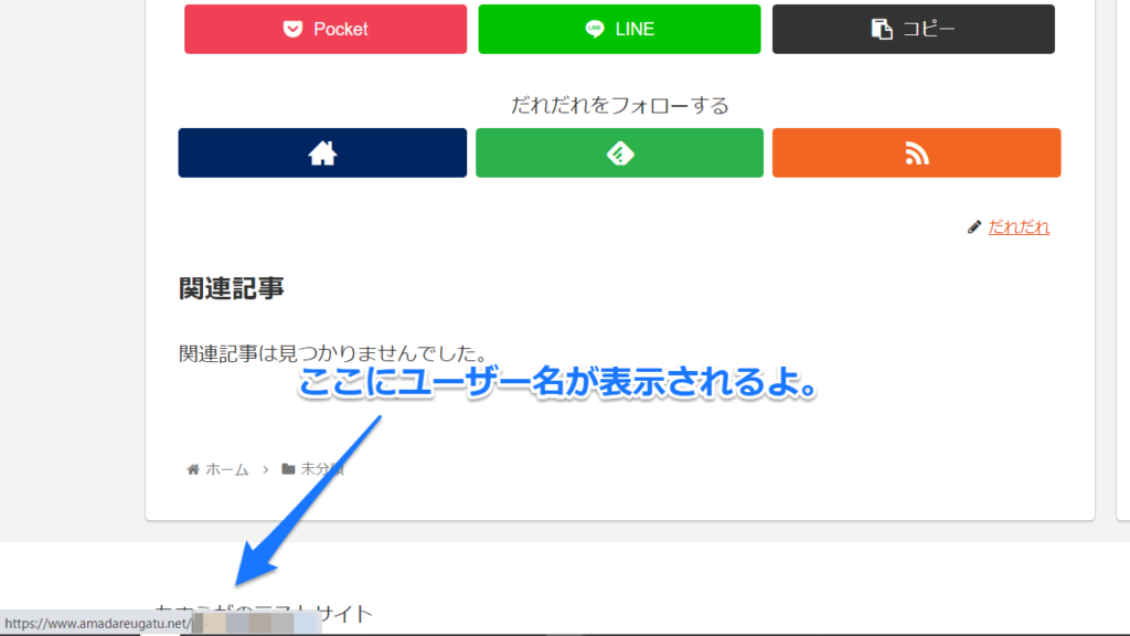 そしたら、ばっちりユーザーネームが表示されたよ!!