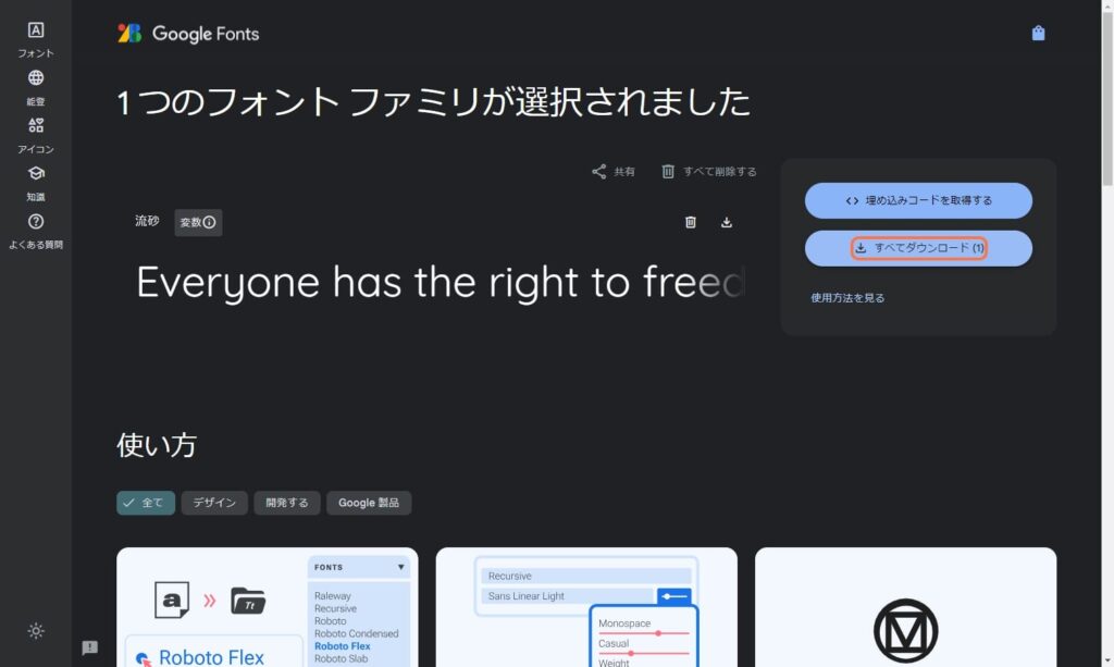 │ └─Webサイトで使用するのは、圧縮軽量化されたフォントファイル(WOFF形式)にすることが好ましいらしい。