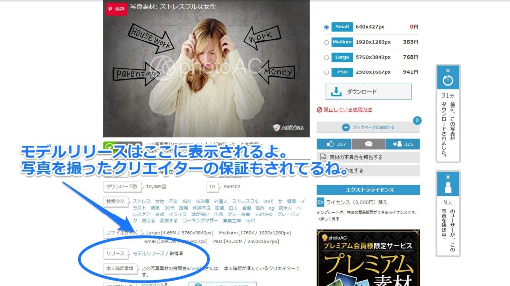 リリースがあるかどうかは、写真によって違うみたい。ダウンロードするときにわかるよ。