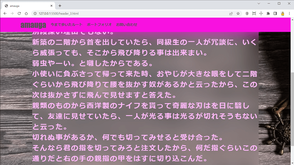 }本文がヘッダーの上に重なる。