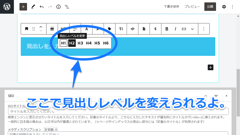 見出しの階層はいつでも変えられるよ。