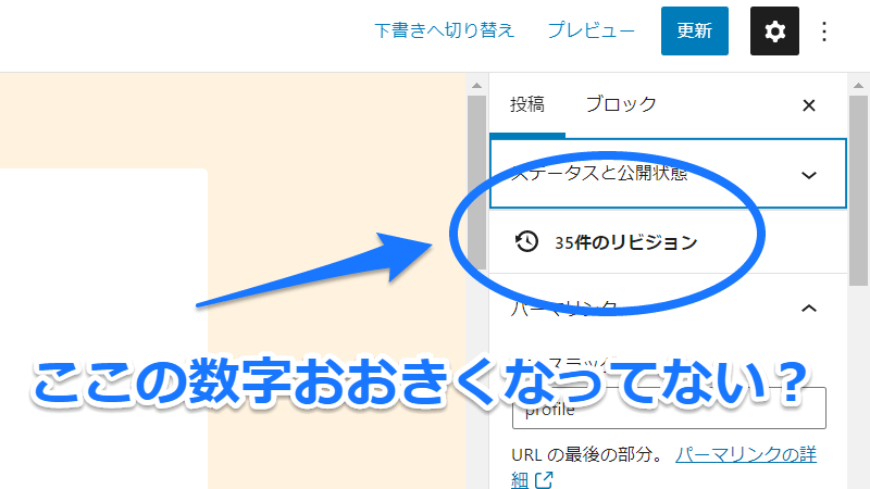 ワードプレスは自動的に「下書き保存」をして、それまでの履歴を残してくれる。